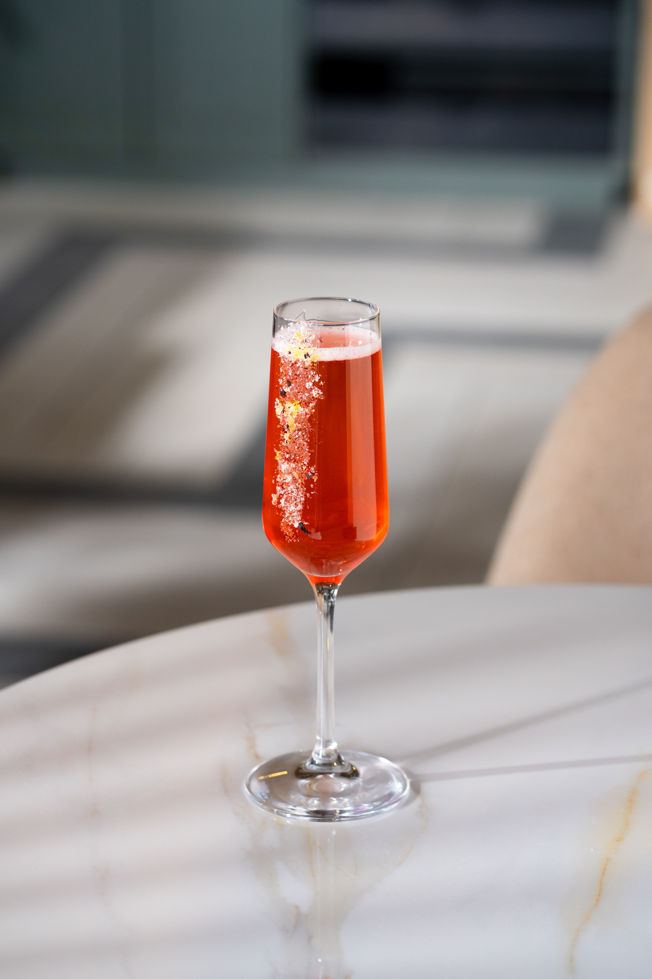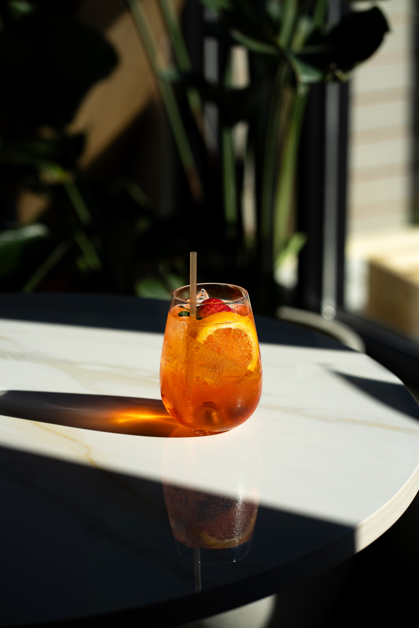 strawberry-infused aperol, prosecco, soda water, housemade orange bitters, rhubarb bitters