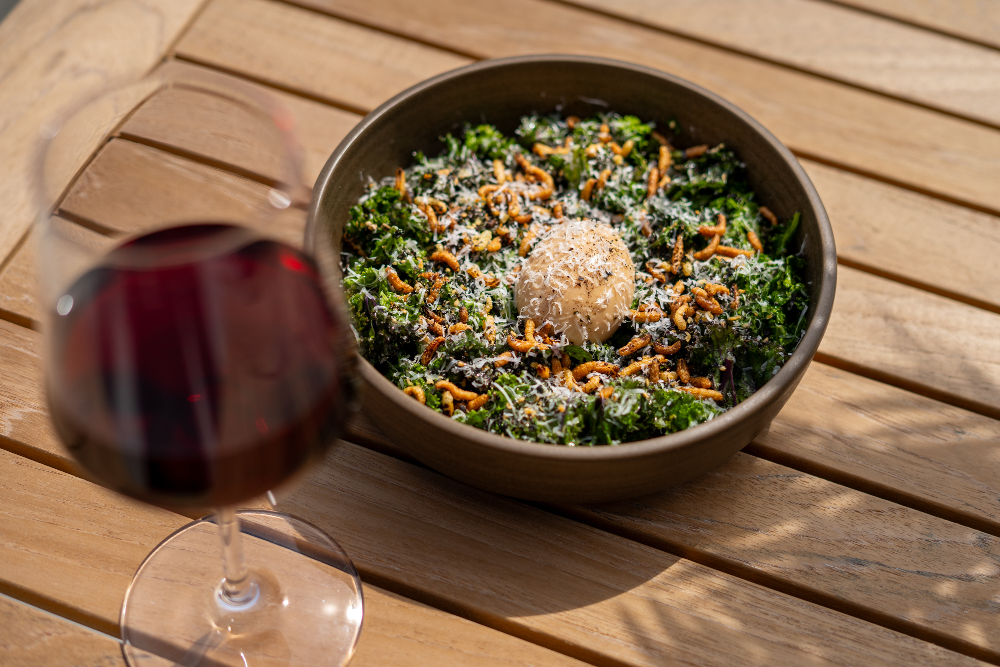 strawberry top-infused aperol, cava, soda water, housemade orange bitters, rhubarb bitters